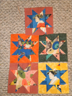 I messed up my first batch by cutting the geese square 4 1/2 oops, the second batch had a few that were no good (not sure what went wrong but something sure did!) so here are 5. If I get to the fabric store soon I might try for the last 4, but I am not holding my breath.