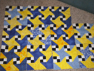 in the meantime, I LOVE this months blocks and went a little overboard. Yellow/blues one of my favorite combos. I made 12, but one turned out way wrong. I hope we get 2-3 winners so I can break them up a bit more, but for sure no two have 2 fabrics alike…sure one fabric in common, but not two!