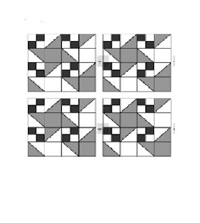 four-patches filling in the gaps. Here’s how 4 blocks look: