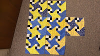 Where has this month gone?!?!? Here are 7 blocks for October – not sure I can finish anymore, but I do like the block and resulting pattern. Also attached is the log cabin topper finished from August Blocks.