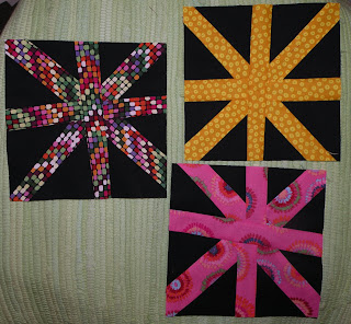 Love these Liberated Asterisks, fireworks, whatever you call them! I finally got some time to make my July blocks, but they ended up TOO liberated, as I failed to read directions carefully. Mine are 6.5″ instead of the required 8.5″, so I guess I just made myself a few pretty fireworks. Well, here’s the picture of the blocks I will nolt be sending to anyone! Put me down for zero for July (unfortunately).