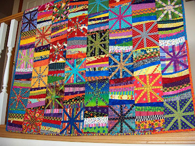 June sent the link to Lori’s Humble Quilts blog post about this quilt and I was so glad to receive it because I had seen this quilt but couldn’t find it again when I went looking. I think our fireworks blocks would be fabulous set with bright string squares (with one or two dark strings in each block).