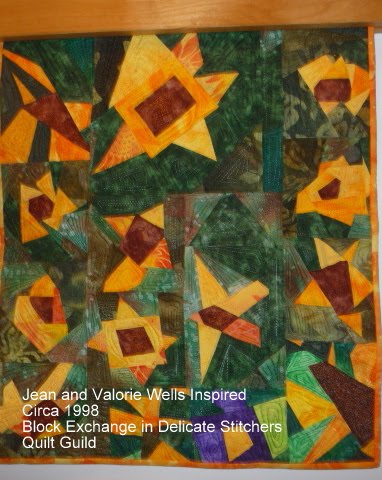 Working with this challenge this month brought back memories of when I first really started quilting–circa 1997-98. There was a challenge of making blocks toward the quilter’s desire. I wanted to make a small quilt using some of the processes by Jean and Valori Wells in their book, “Through the Garden Gate.” I spent hours looking through that book, but being dyslexic and also a new quilter with very few scraps, I needed some help. I could not figure out how to do those blocks. But, I finished a small quilt and I still bring it out for the summer, pictured right.