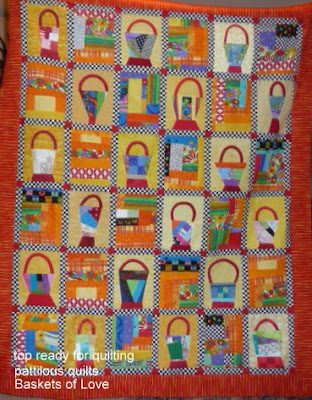 This and That Posted by Automagically imported from Blogspot on August 4, 2010 in block lotto community, sent and received | Comments Off on This and That 1. Fireworks blocks sent off yesterday to Linda. 2. Basket blocks received from Sophie~~Thanks! First Basket Blocks top ready for quilter~~”Baskets of Love” Thanks to all who sent these blocks!!! pattilou in UT