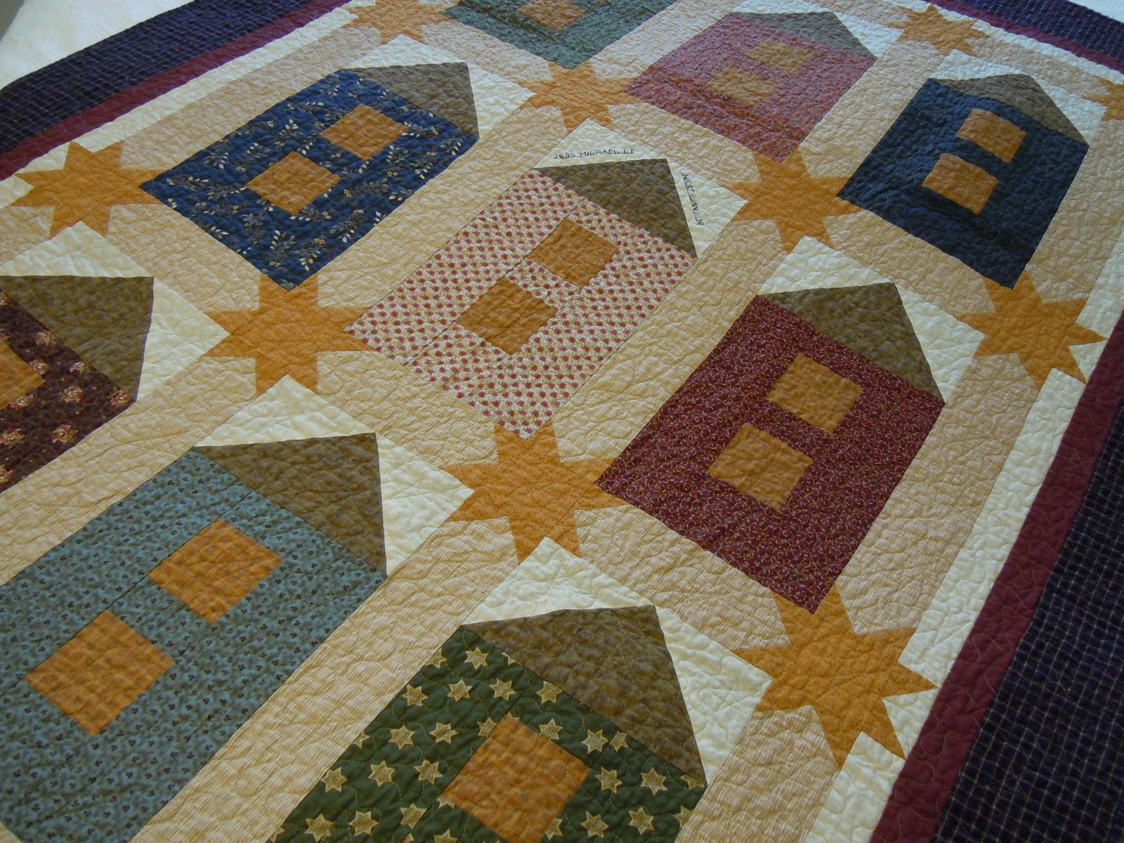 I had to share another quilt made from houses and stars.  This one is made from Thimbleberries’ pattern and fabrics and is anything but liberated . . . but when I saw it on Stephanie’s Loft Creations blog this morning, I immediately thought of re-making it liberated style.