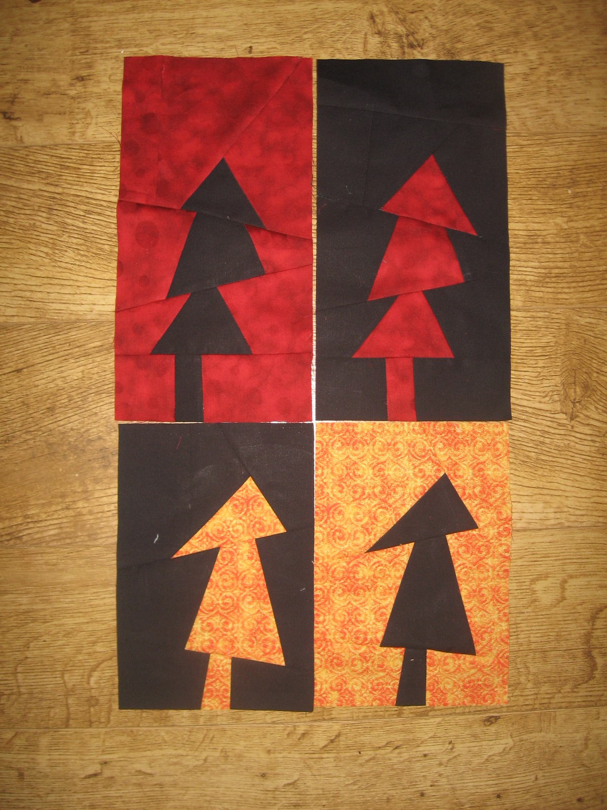 Had a chance today to do two pairs of blocks (thanks to an unexpected snow day) – I’m hoping to do some more tomorrow or on the weekend, but thought I’d post these now, just in case. Wouldn’t want to forget them at the end of the month!