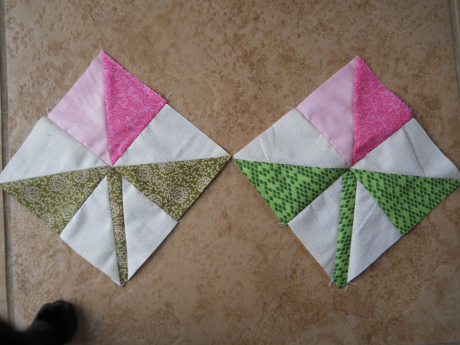 I really like this block. I think it’s great that Kate designed it. It’s easy to make, but looks complicated. I was surprised at my lack of “cream” fabric, so there are only 2 so far. (The light makes my cream look a little white in this picture) I got a some more cream fabric yesterday so as soon as I can get it washed, I’ll make some more. I’m actually on vacation next week, so it might be a couple of weeks, but I definitely will do more of these.
