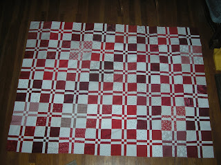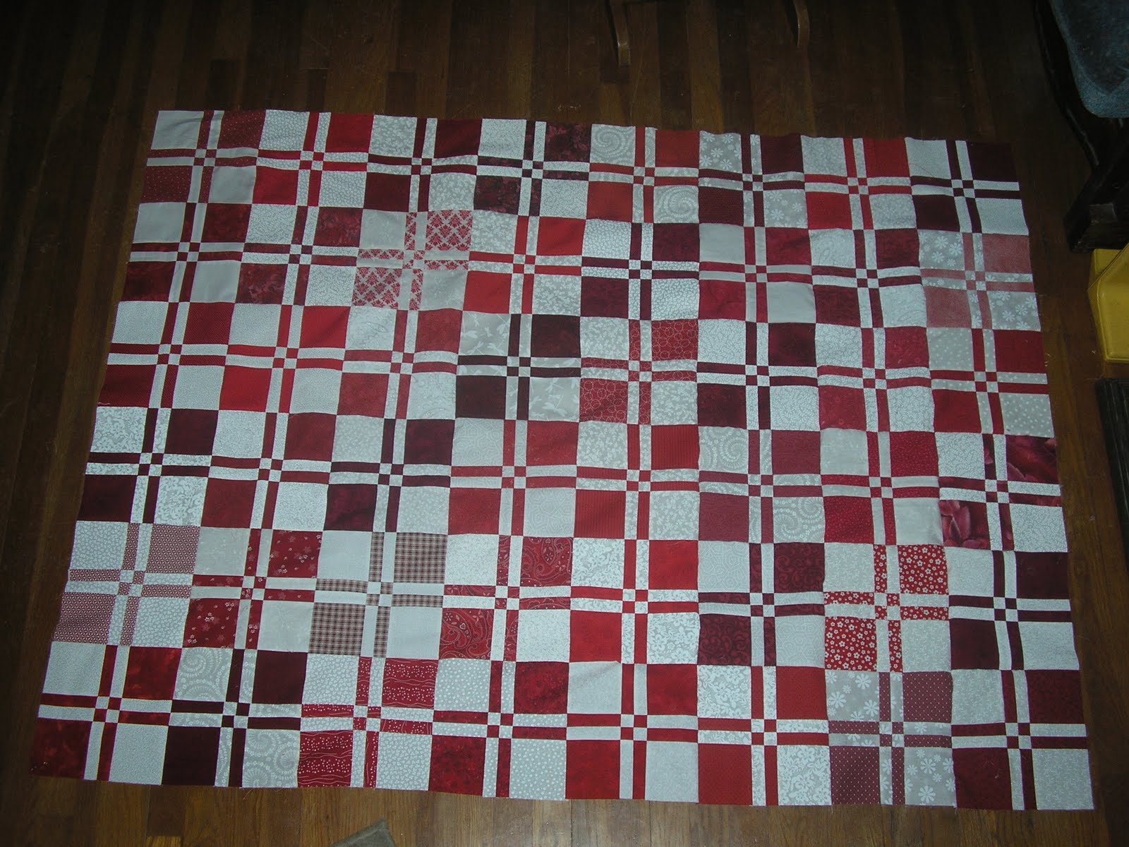 I wanted to show some Progress on my Red and White D4P Swap quilt. This month over at “Patchworktimes” the color for the Monchromatic Challenge is RED! How perfect for me to have WON these blocks just last month. Who knew how many shades of Red you all could find. I like the varied backgrounds. Thanks to everyone who sent their blocks to me. Tonight, I got the blocks all sewn together and it is ready for the border…maybe two borders. In the morning I’ll see what fabrics jump out of my STASH to play with the quilt. I have only a few more days left in the month to get this one quilted and bound, wish me luck!