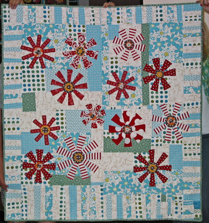 This is Monica’s Show and Tell quilt. The rectangular blocks are set in the way I tried to emulate with my block photo.