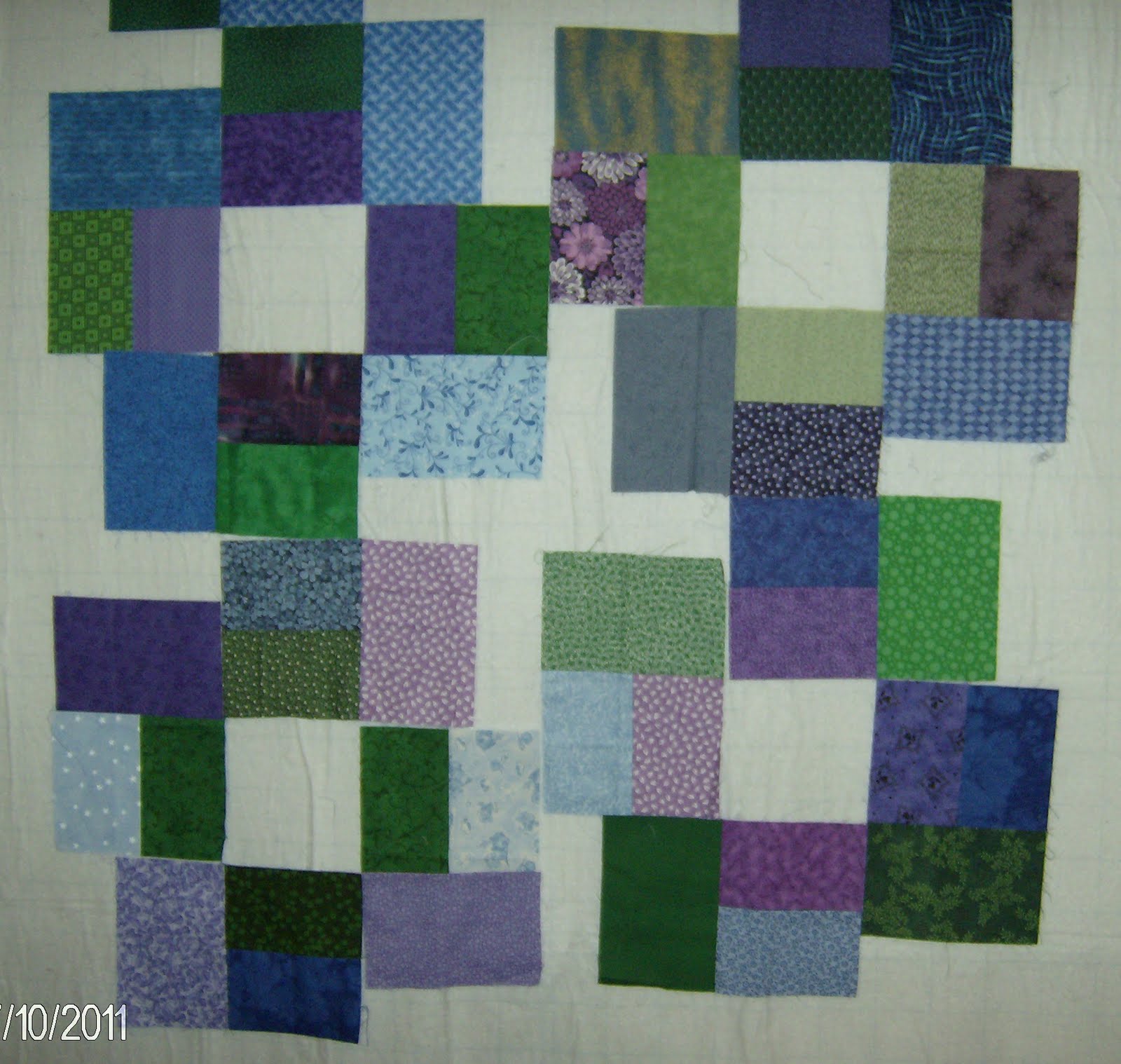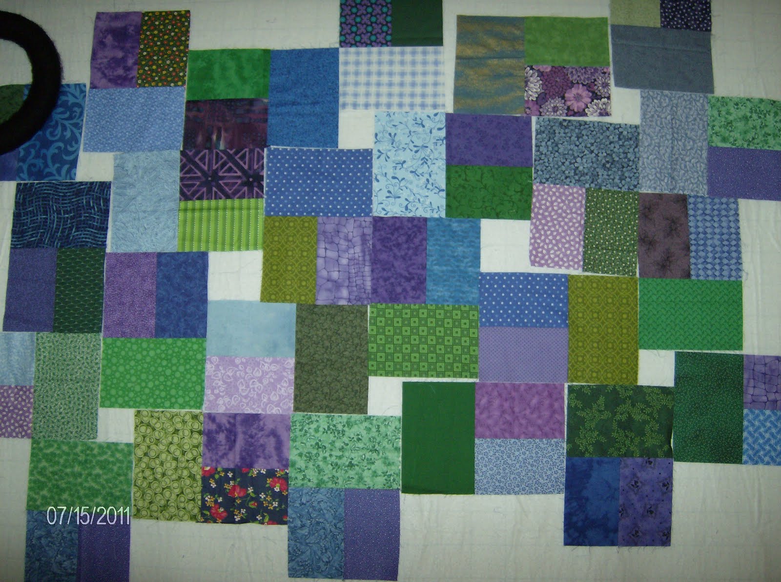 It looks like you're having fun creating order from your scrappy blocks. I don't have a favorite layout or any suggestion for you except maybe to keep playing until one of the arrangements/color ideas speaks to you.