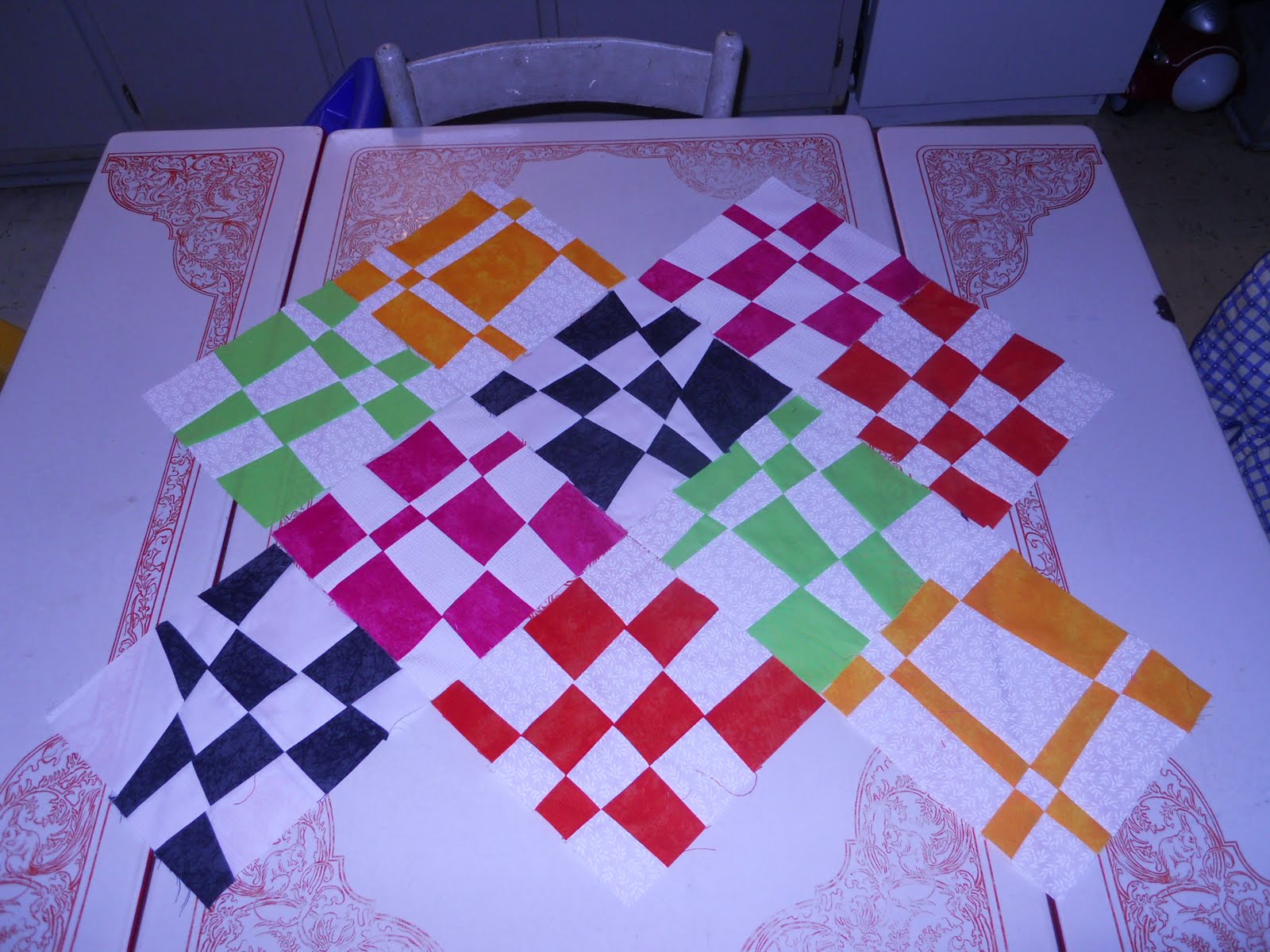Here’s my five sets of blocks for the July Block Lotto — Checkerboard Blocks. Why is it that every month I say, “OH! I love that block!!!” “I need to make more!!!” I think I have been bit by the quilt bug!