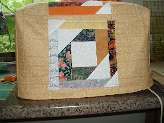 The timing is perfect! I got my last three Pineapple Blossom blocks today. And I will be able to start arranging them tomorrow. I have to admit to using two of my earlier received blocks when I made a sewing machine cover. The colors were too perfect. Maybe you recognize your blocks?