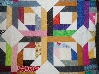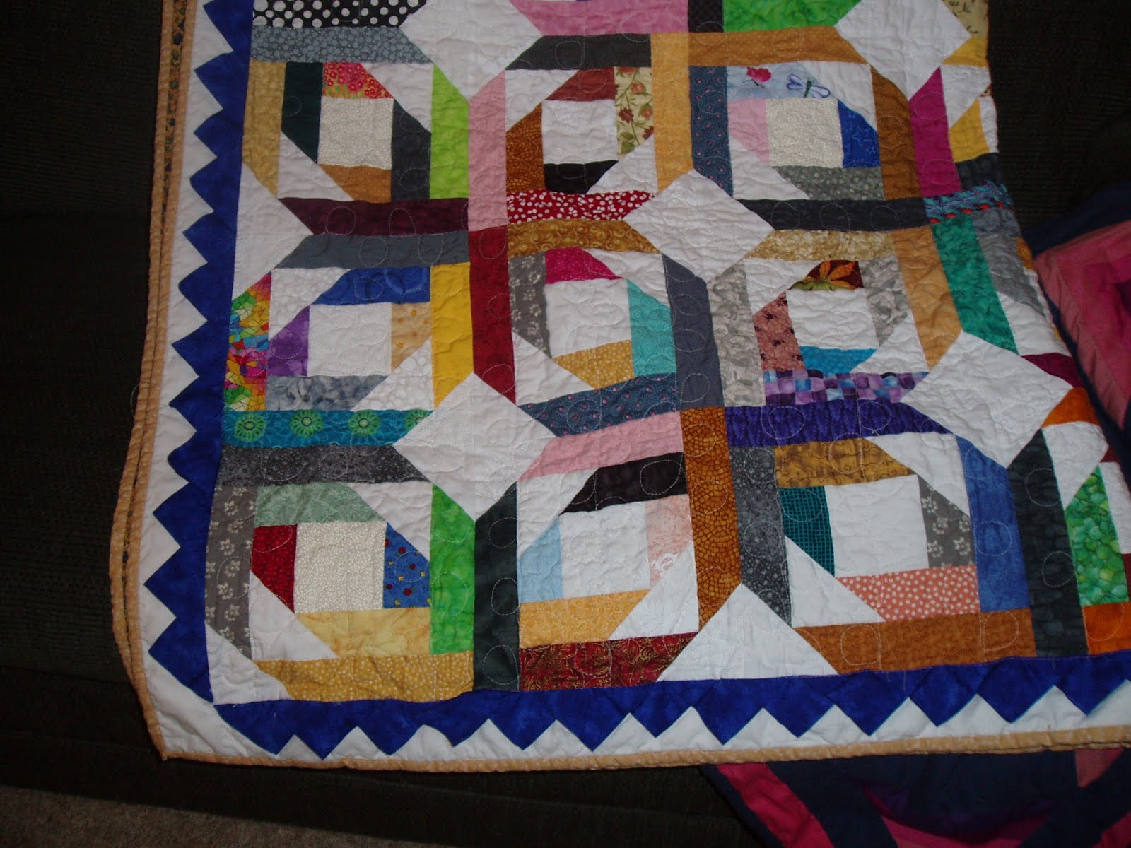 What a great scrappy quilt – my favorite kind! You did a wonderful job with the quilting and the border you picked really sets it all off. Kathie L in Allentown