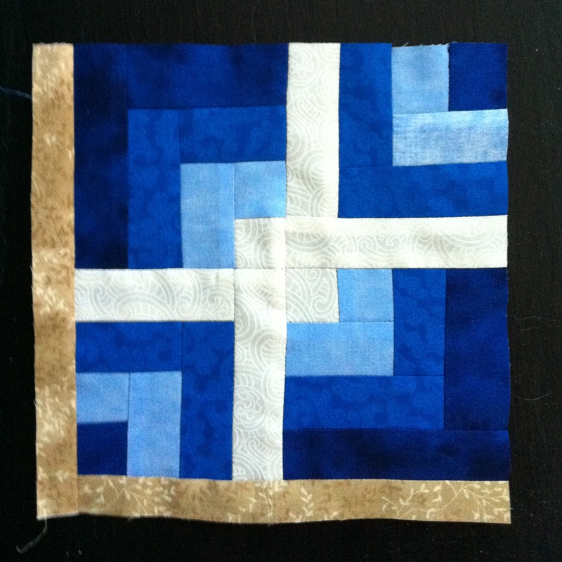 Here is my one and only block for this month. I want to participate each month but this was a real challenge for me. Hope it is good enough. I think the pattern is called “Lover’s knot”.