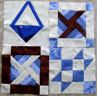 These are my first four for this month. The top left block is a liberated basket using some of my made fabric.