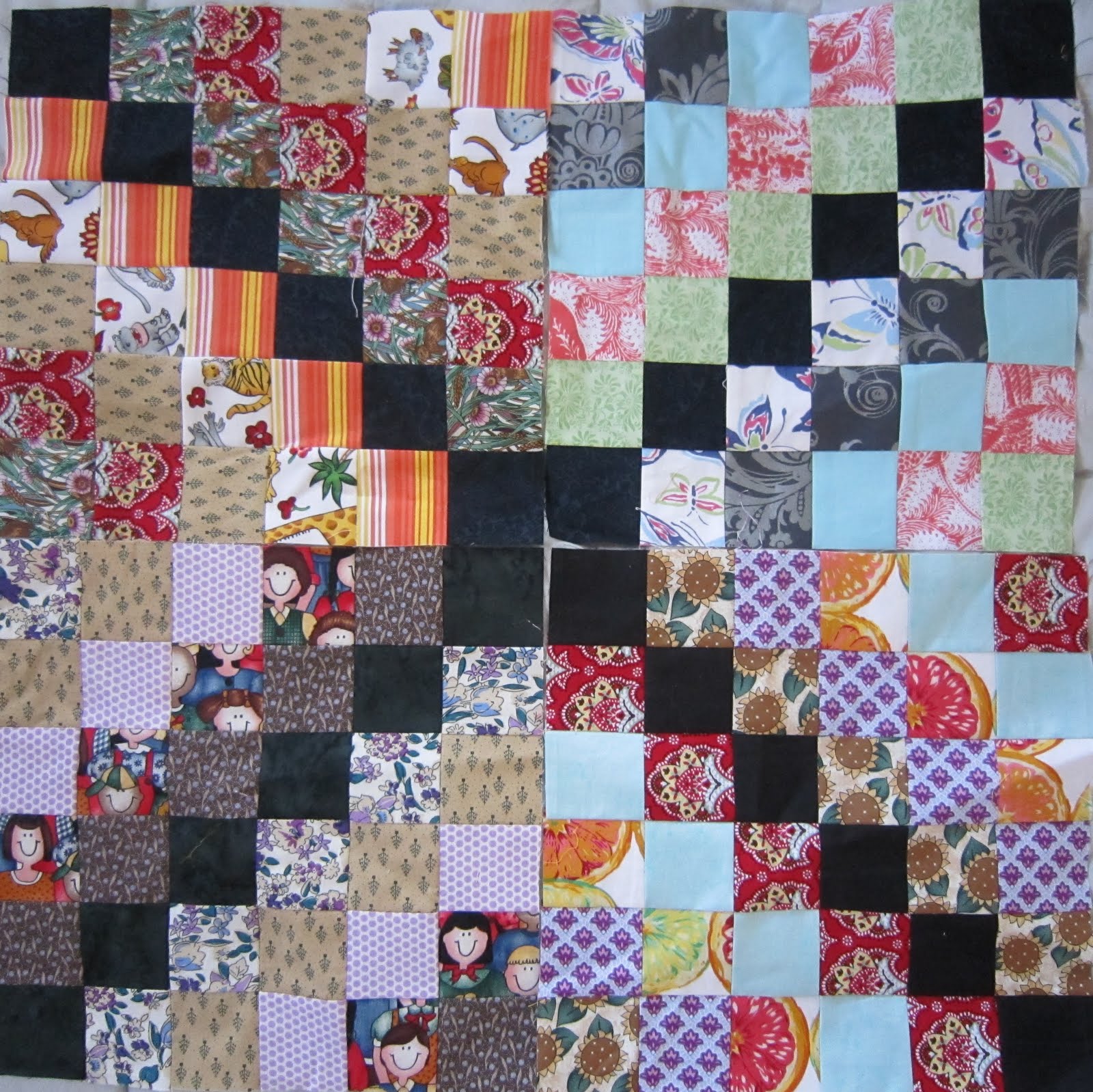 You've used a great range of fabrics in your blocks. I like those little kids' faces popping out of the lower left block.