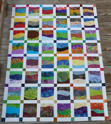 I feel like I am looking out a window onto a fantastic landscape. You did an amazing job creating flow by matching top/bottom fabrics in the blocks.