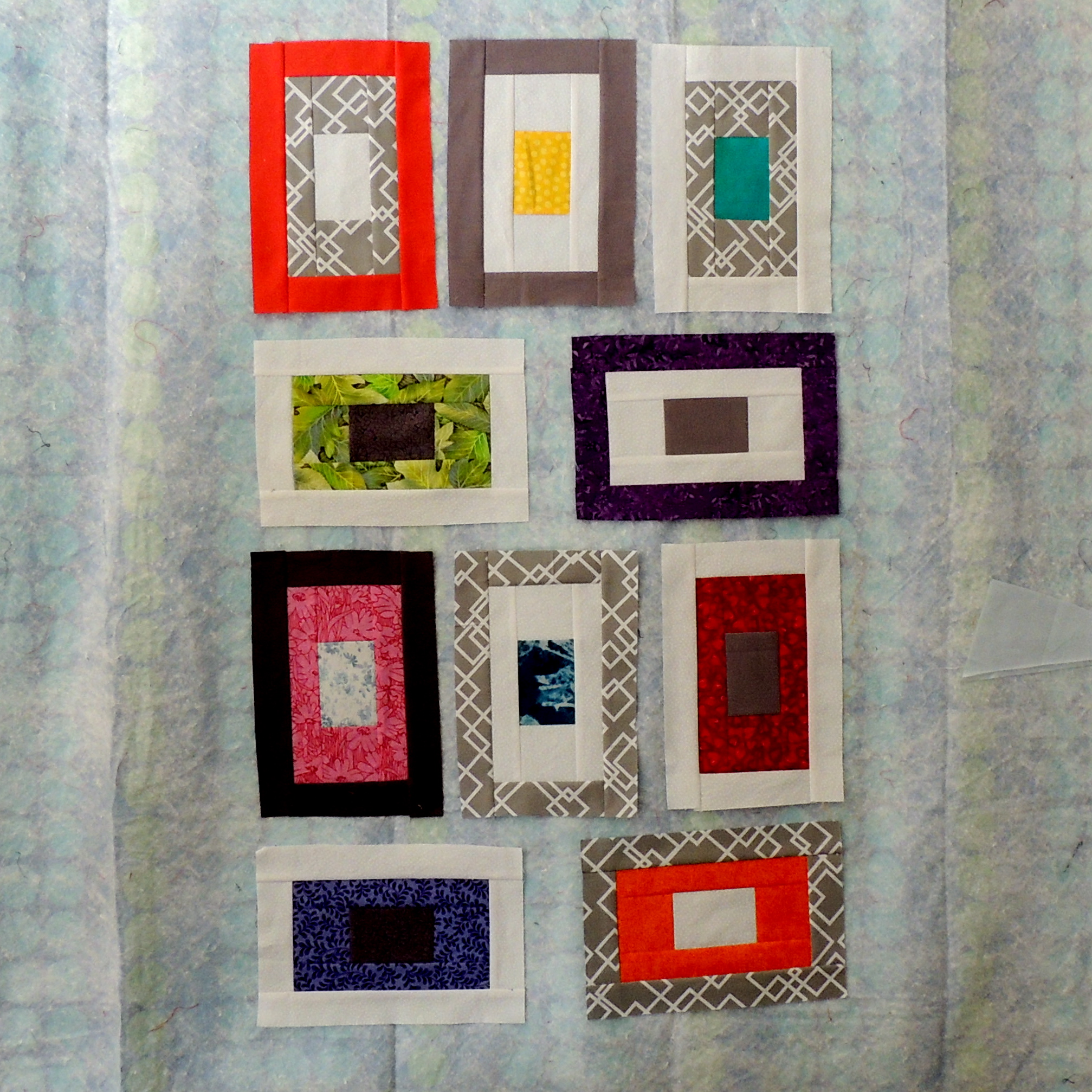 Sophie’s March Blocks Posted by Sophie on March 1, 2013 in blocks | Comments Off on Sophie’s March Blocks I confess that the reason I made 10 blocks this month was so I could see them on my temporary design wall arranged like this. As you can see, unfortunately, the design wall is a flannel-backed tablecloth:-(