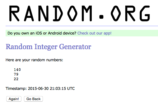 (Barb was unable to pick our winners before she had to leave for work, so I’m doing it … so I’ll be able to wrap things up and pack up my computer. )