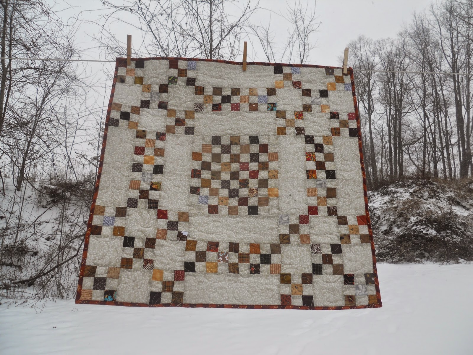 I made the December block and was able to put the top all together in a short stop at home. I chose to make a small one because I did want to finish it, and it will be a wall hanging for my living room.