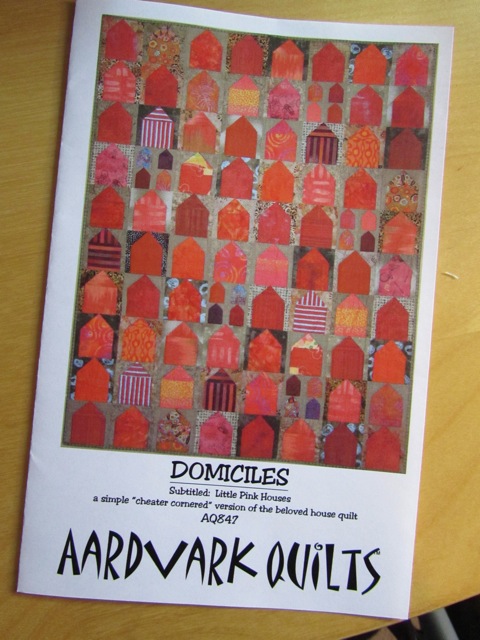 You could add black strips to each side of our blocks and put them together in a straight set for a similar effect to Aardvark Quilts’ Domiciles.