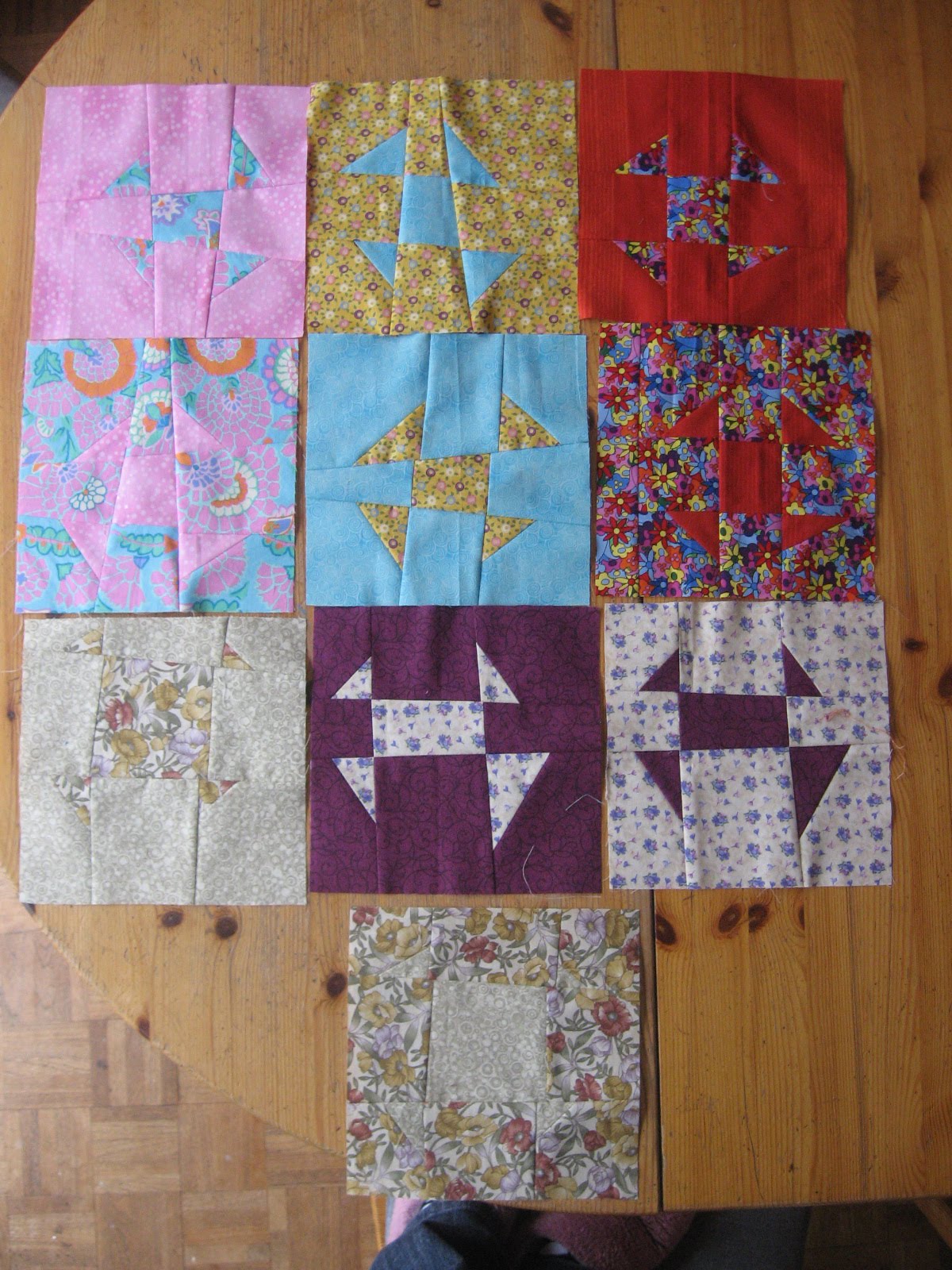 Here are the blocks I made for April – I did the third method, which created pairs of blocks, so there is an extra – though it doesn’t really have great contrast, so it’s probably not the most desired block of all – still, I am happy to throw it in the pot if it’s considered worthy! Sophie, I’ll donate my chances this month – too many blocks hanging around again, I really should acquire any more…