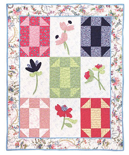 If you are a fan of appliqué–or wanted to give it a try–this could be a great setting idea for wonky Shoo flies, too. You could even use the easy free-form machine appliquéd posies we made for the lotto a couple years ago for the flower blocks.