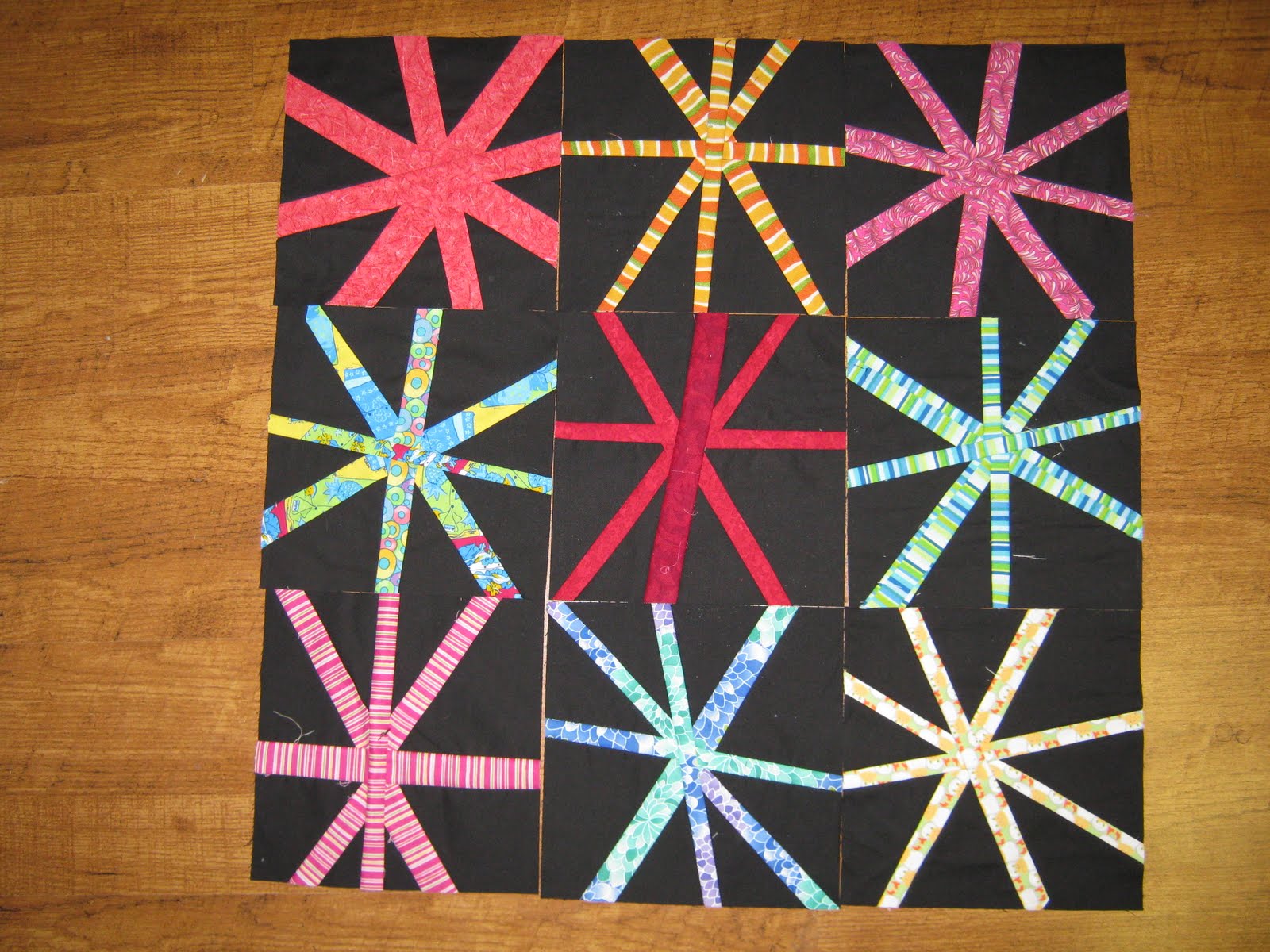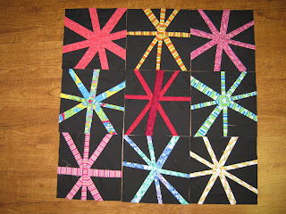 I just used some strings I had on hand, so even the legs on a single bar aren't neccessarily the same width. This was a fun block…I'm getting better at this liberated thing!