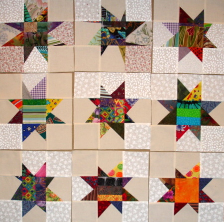 Usually, I’m not crazy about the liberated method of block making, but I really like this star pattern. I just can’t quite get the hang of it. You would not believe how many pieces ended up in the trash. Anyway, here’s my 9 for this month.