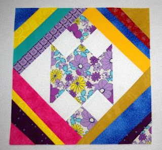 I love the contrast of the yellow in the strips with the purple blocks. Opposites really DO attact!