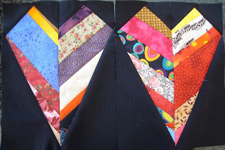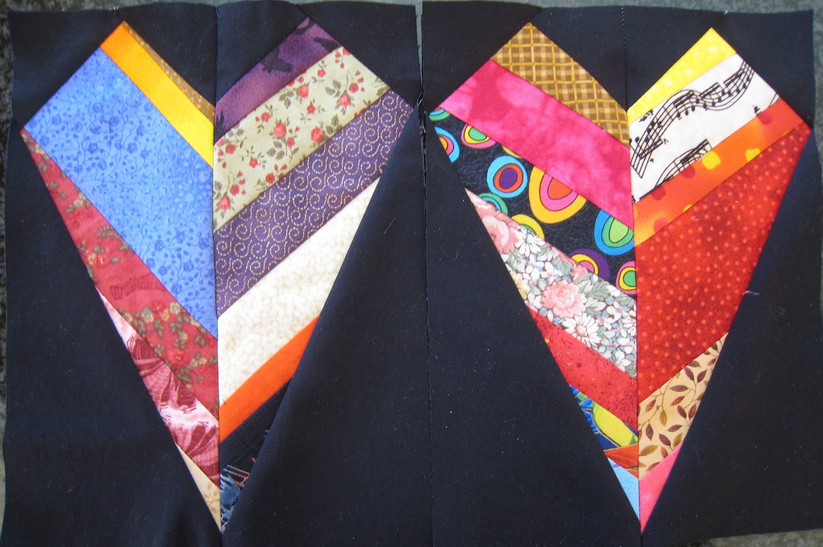 Wandering through Blogland, I saw so many cool quilts that people were making with their Block Lotto blocks, that I just had to pop over to see what is going on here. I love the February hearts! (And the January stacks, and the earlier blocks …) So here I am, with my first two blocks for the month: