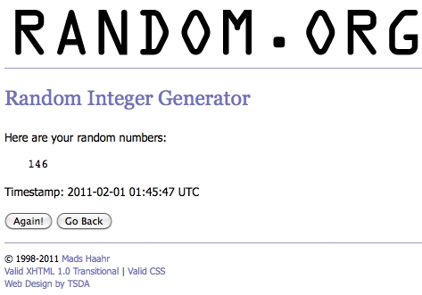 Mary Beth (AKA mb) ALSO reminded me that she wanted to donate her chances … and so a new Winner #2 was randomly selected.
