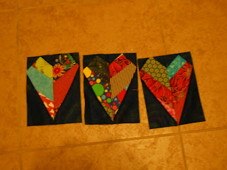 Here are three hearts from me. The picture color isn’t very good, but here they are. I’ve never done string fabric before so once again Block Lotto has pushed me to try new things. Hope to get some more done before the end of the month. We’ll see.