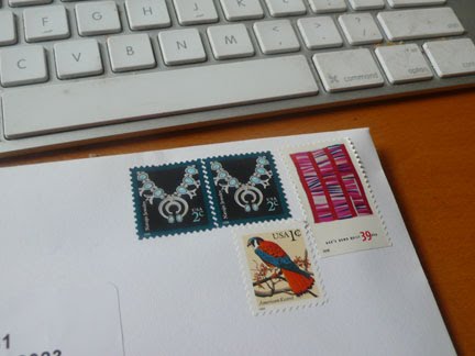 After carrying Ingrid’s hearts in my bag for almost a week, I finally remembered to put them in the mailbox. As you can see, I’m still trying to use up my stamps. Congratulations Ingrid!