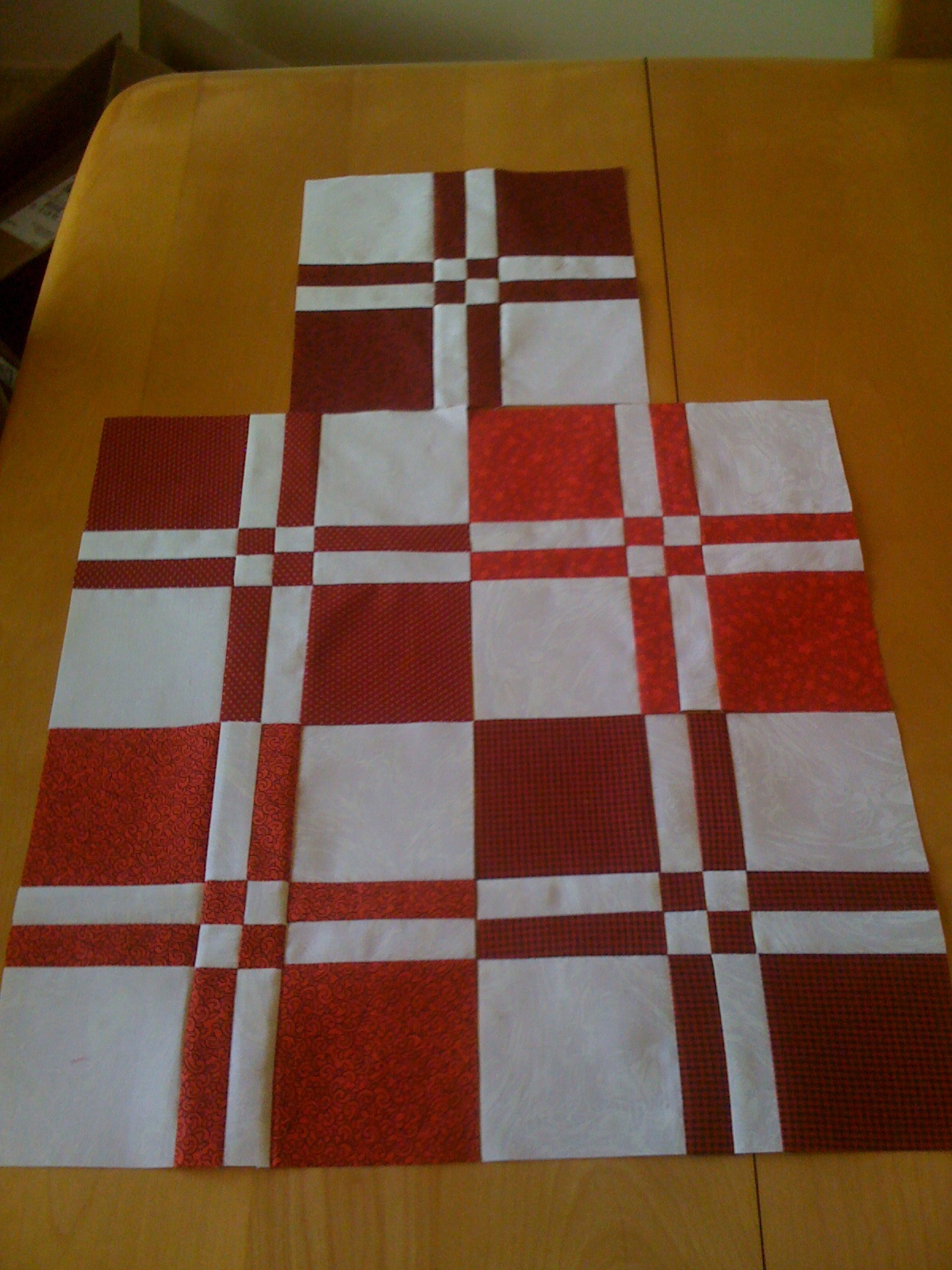 The duplicate red ones (not pictured) will be sent for use in a charity project that is collecting red and white blocks that are 8.5 inches unfinished. Blogged here. Having the fabric ironed and cut really helps speed the process up!