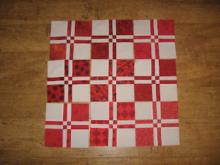 Well, Sophie posted some of my blocks already this month – 6 which I made in the sneak peek period – but I have now finished all nine of the blocks I wanted to make for this month (hoping I win them!!) as well as a good number more to send to Clare for Quilts for Leukaemia. These 9 are slightly different from the 6 I originally sent photos of to Sophie – in addition to adding three, I decided that one of the fabrics was a bit pink, so I swapped it for something else. Anyway, there are 9, the reds are all different, and I’m happy!