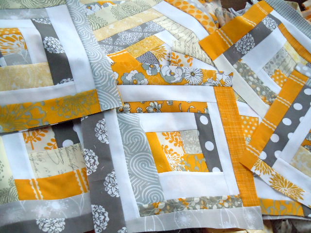 These wonky log cabin blocks reminded me of our gold-gray-white rules for this month’s lotto block.