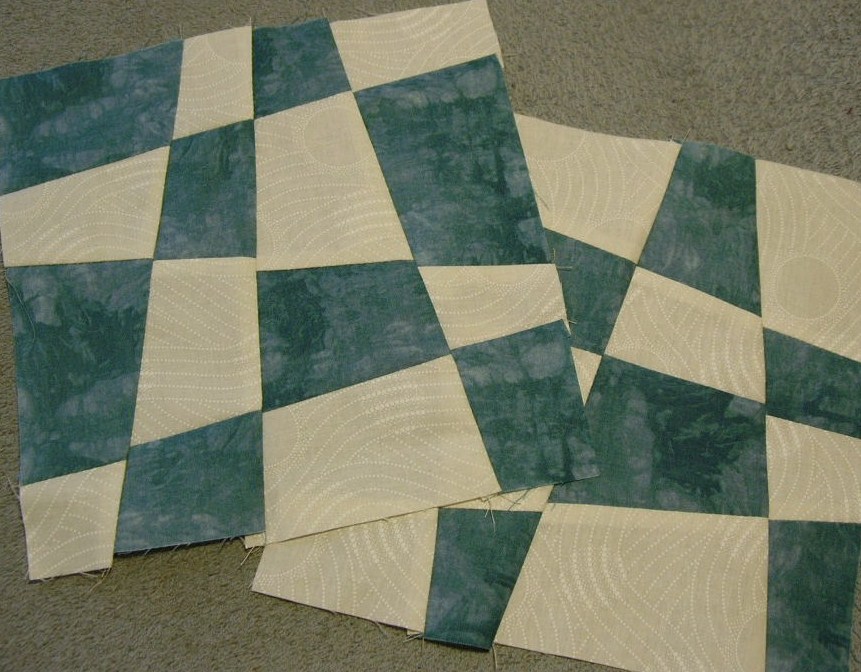 Here are my two July Lotto blocks… a gazillion years ago my SO and I painted the floor of a club in Los Angeles with this sort of checkerboard! Hadn’t thought of that in YEARS. Great block choice, Sophie… fun to make.