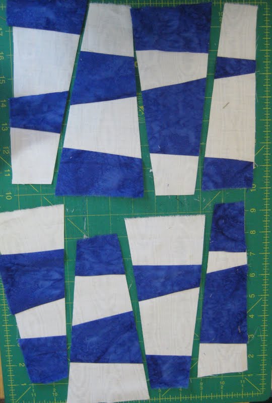 Make your three cuts in one direction, switch very other piece, and sew the strips together to make two new blocks.