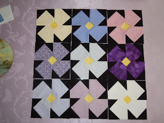 I finished nine Violet blocks today. After checking out photos of African Violets, I was amazed at the variety of colours that are grown and tried to make the blocks as close in colour as I could manage. The blocks this month will make a lovely quilt. Good luck to everyone who has made one.