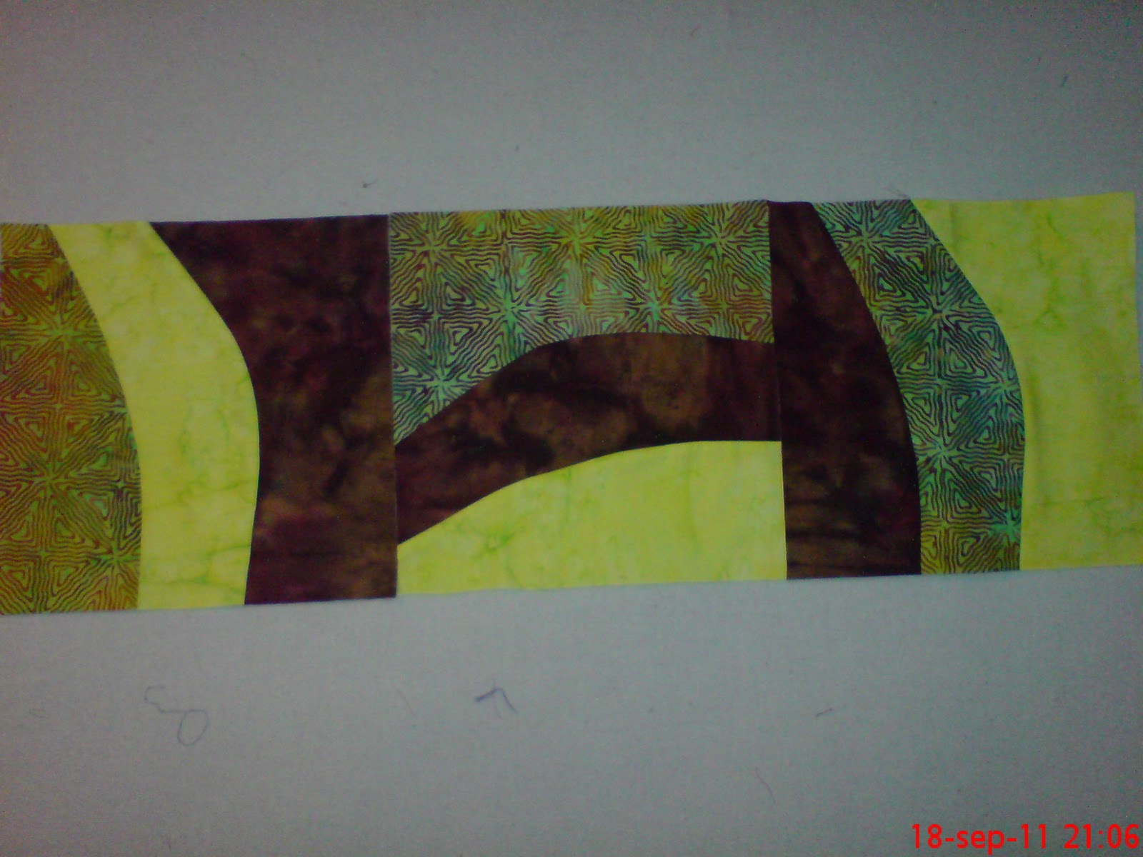 Batik Curved Rails Posted by Automagically imported from Blogspot on September 19, 2011 in blocks | 1 comment 3 blocks from me this month. I was lucky in August and have a Quilt to finnish. Vivi 🙂