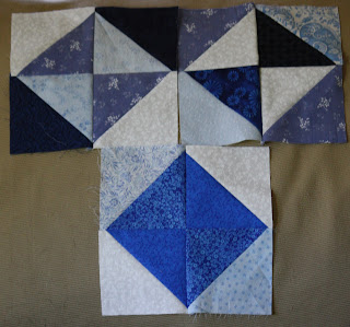 & so finally all caught up & here they are: my October 2011 sampler blocks. They are variations on the traditional block “broken dishes”. It seemed appropriate somehow. Also I just love this block & used this same color scheme to make a broken dishes quilt for my step-father years (OMG it has been years!) ago.